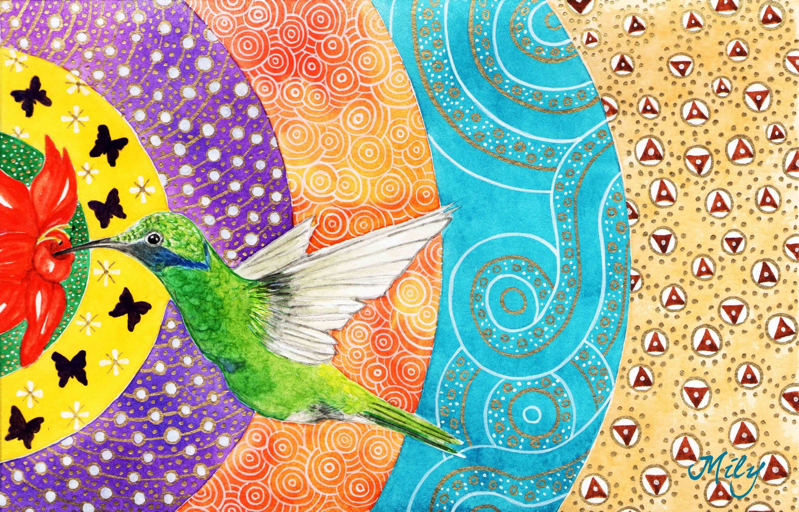 Just finished this illustration ,with my favorite bird : Hummingbird -Colibrí.